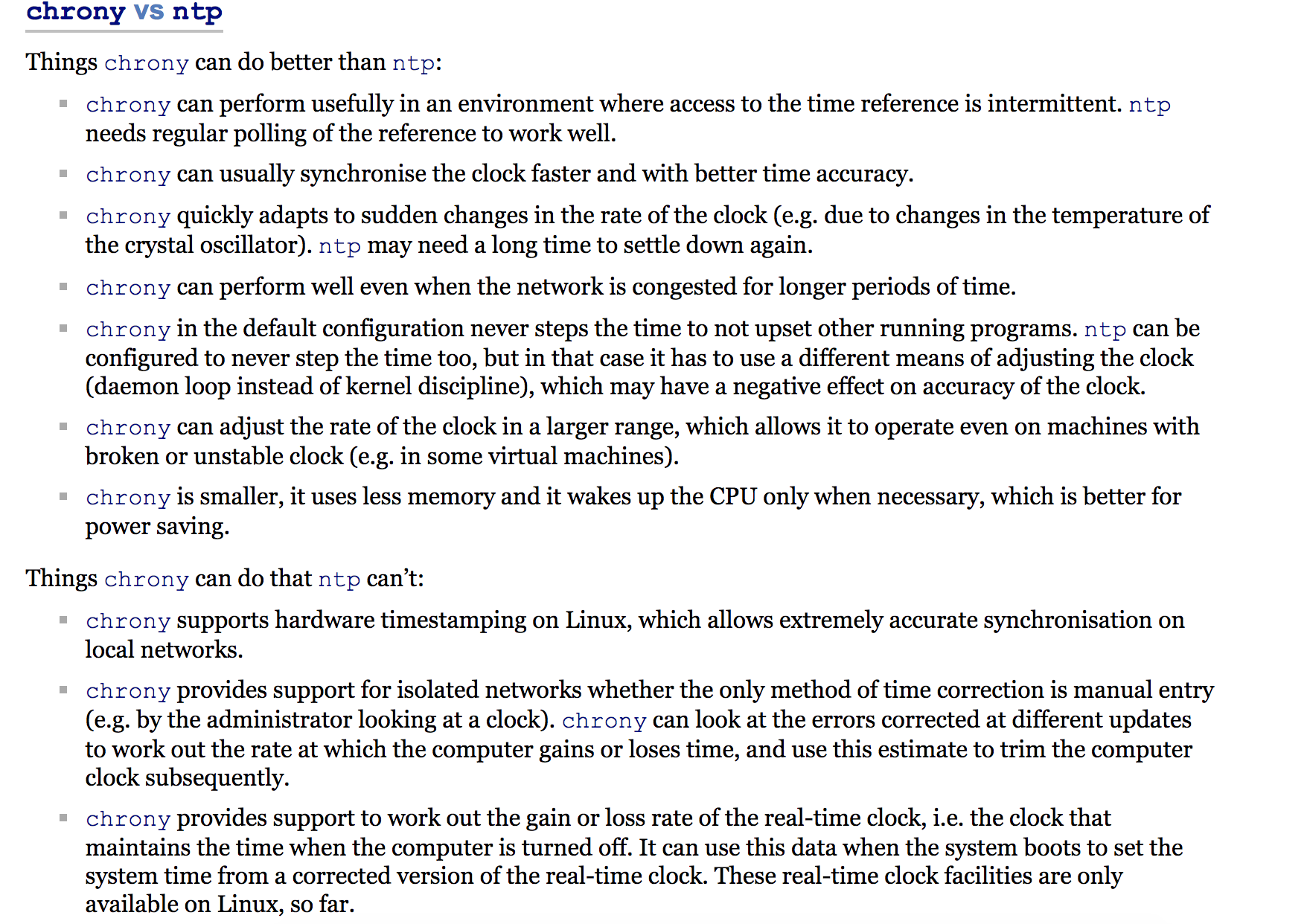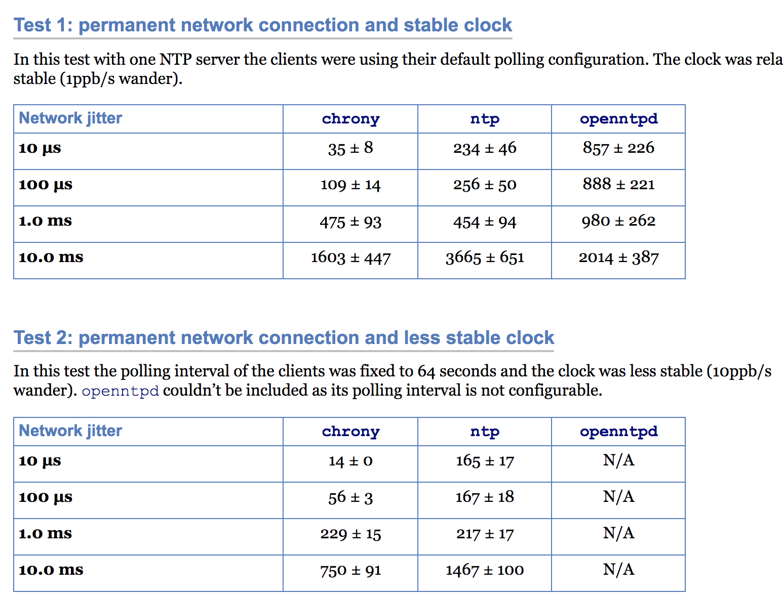 正因为NTP的设计者一开始就考虑的非常全面,使得目前NTP的授时精度早已经达到理论瓶颈。广域网的授时精度要想稳定性&精度超越ntpd,几乎不太可能(PTP只能用户局域网),因此短期内我还是会继续选择NTPD作为时钟同步软件。对于NTP这种古老的协议,目前还有人愿意投入精力去改进实际是非常难能可贵的,真心希望chrony能早日从稳定性&精度两个方面超越ntpd。
