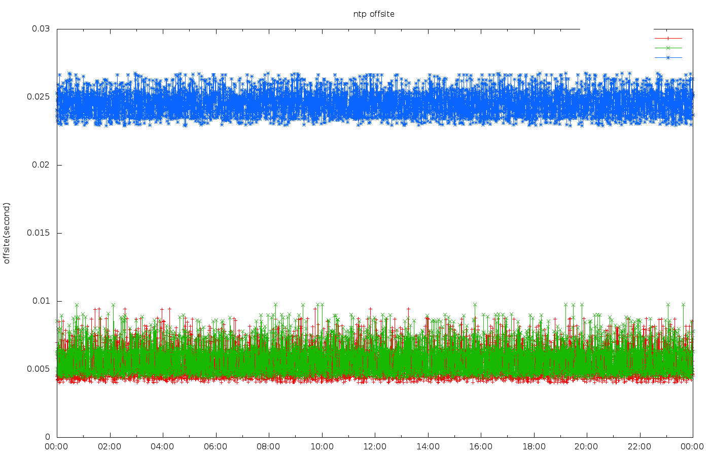 Redhat从RHEL 7.0开始使用chrony替换ntpd作为默认的ntp同步工具。从chrony的官方网站上可以看到与ntpd各维度详细对比:从其测试结果上看似乎是各维度性能都可以吊打ntpd。因此chrony对自身的整体评价还是比较高的在测试之前,从理论上说chrony的主要优点在于:1. 支持Hardware timestamping,时间戳会更加准确,因为从网卡到内核之间的延迟可能有几十us。2. 支持xleave,可以提升对网络延迟的测量精度。为了评估内部是否需要使用chrony来替换ntpd,我自己也做了一些测试。主要是从集群的延迟稳定性和时钟偏差2个维度来衡量。测试集群选择三个城市的多个机房内服务器做测试。1. chrony的延迟稳定性2. ntpd延迟稳定性