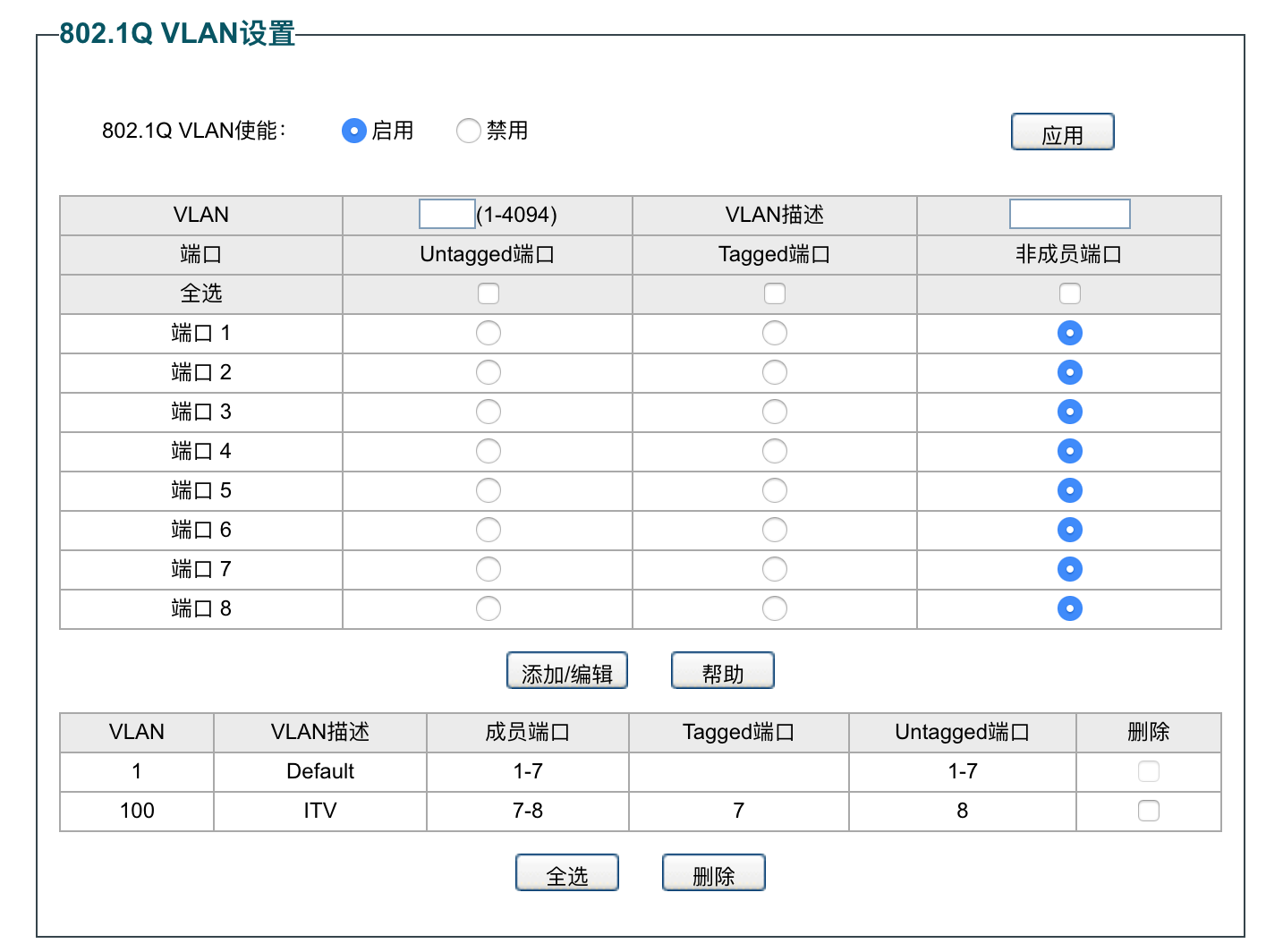 弱电箱里使用了水星的支持VLAN的交换机,配置如下